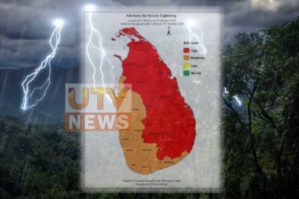 இன்று (07 ) இரவு 11 மணி வரை செல்லுபடியாகும் வகையில் வளிமண்டலவியல் திணைக்களம் பலத்த மின்னல் குறித்து எச்சரிக்கை அறிக்கை ஒன்றை வெளியிட்டுள்ளது.