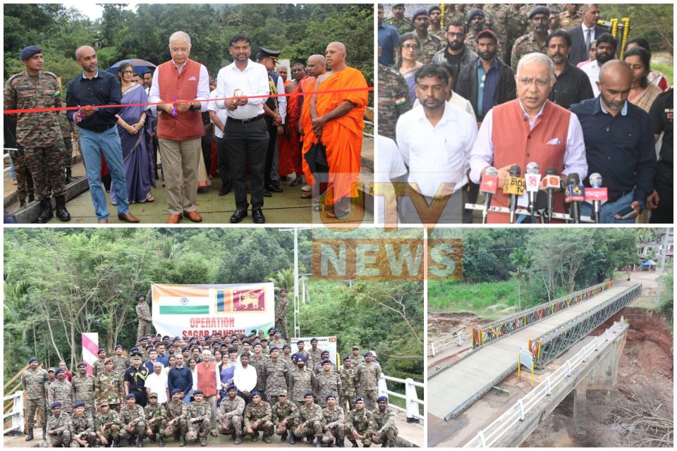 100 அடி நீள பெய்லி பாலத்தை இந்திய உயர் ஸ்தானிகர் சந்தோஷ் ஜா, போக்குவரத்து மற்றும் நெடுஞ்சாலைகள் பிரதிஅமைச்சர் பிரசன்ன குணசேன மற்றும் கல்வி மற்றும் உயர்கல்வி பிரதி அமைச்சர் மதுர செனவிரத்ன ஆகியோர் சனிக்கிழமை (10) திறந்து வைத்தனர்.