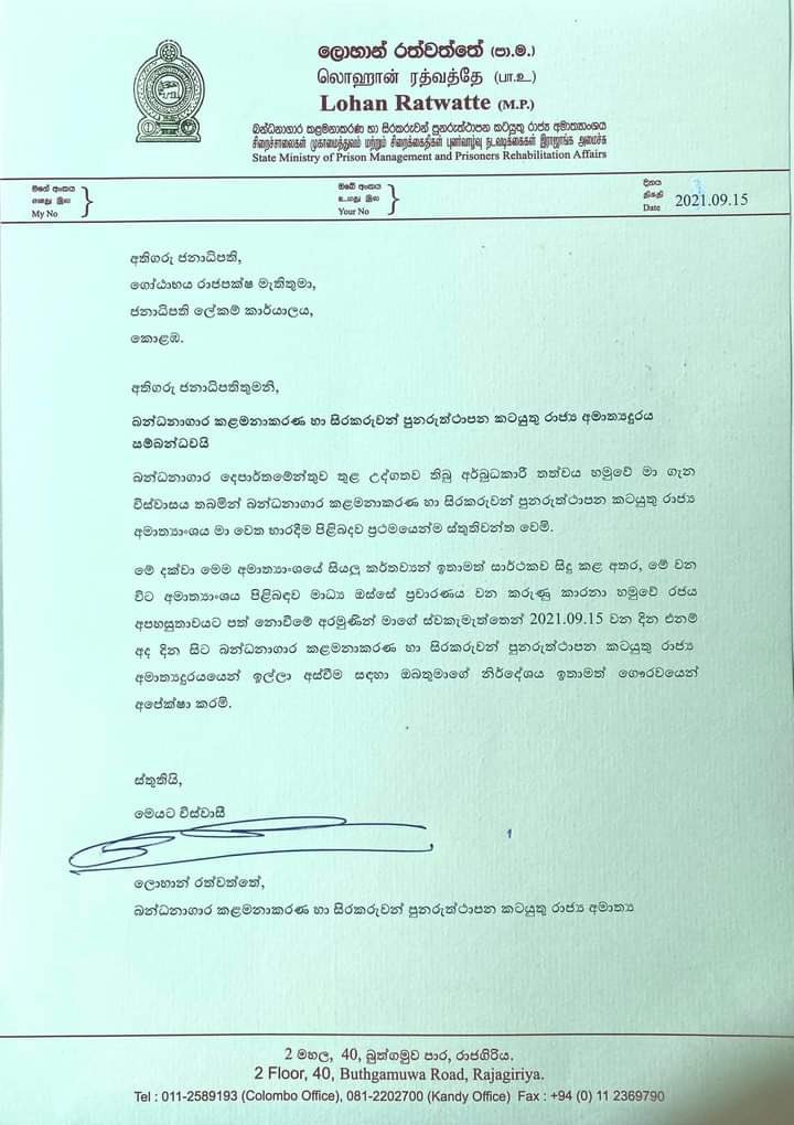 உள்நாடுஇராஜாங்க அமைச்சர் லொஹான் ரத்வத்த இராஜினாமா September 15, 2021September 15, 2021166 Share0 (UTV | கொழும்பு) – சிறைச்சாலைகள் மறுசீரமைப்பு இராஜாங்க அமைச்சர் லொஹான் ரத்வத்த பதவி விலகினார். குறித்த பதவி விலைகளை ஜனாதிபதி கோட்டாபய ராஜபக்ஷ ஏற்றுக் கொண்டுள்ளதாக ஜனாதிபதி ஊடகப் பிரிவு தெரிவித்துள்ளது.