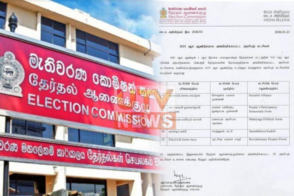 இலங்கை தேர்தல் ஆணையம் 1981 ஆம் ஆண்டின் 1ஆம் இலக்க பாராளுமன்றத் தேர்தல்கள் சட்டத்தின் 7(4) (ஆ) ஆம் பிரிவின் ஏற்பாடுகளுக்கு இணங்க 2025 ஆம் ஆண்டிற்காக அங்கீகரிக்கப்பட்ட புதிய அரசியல் கட்சிகளின் பட்டியலை உத்தியோகபூர்வமாக வெளியிட்டுள்ளது