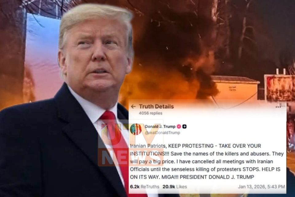 ட்ரம்ப் தனது ‘Truth Social’ கணக்கில் இட்டுள்ள பதிவில், “ஈரானிய தேசபக்தர்களே, போராட்டங்களைத் தொடர்ந்து முன்னெடுங்கள் – உங்கள் நிறுவனங்களை உங்கள் கட்டுப்பாட்டுக்குள் கொண்டுவாருங்கள்!!! … உதவி கிடைத்துக்கொண்டிருக்கிறது” எனக் குறிப்பிட்டுள்ளார்.