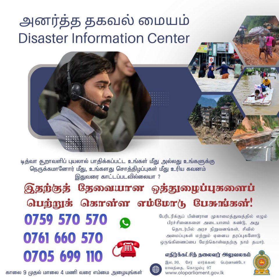 பாதிக்கப்பட்டவர்கள் தங்கள் பிரச்சினைகள் மற்றும் தேவைகளை இந்த தகவல் மையத்திற்கு தொலைபேசி அழைப்புகள் மூலம் நேரடியாகத் தெரிவிக்கலாம் அல்லது WhatsApp மூலம் அனுப்பி வைப்பதற்கான வசதிகளும் இங்கு மேற்கொள்ளப்பட்டுள்ளன.