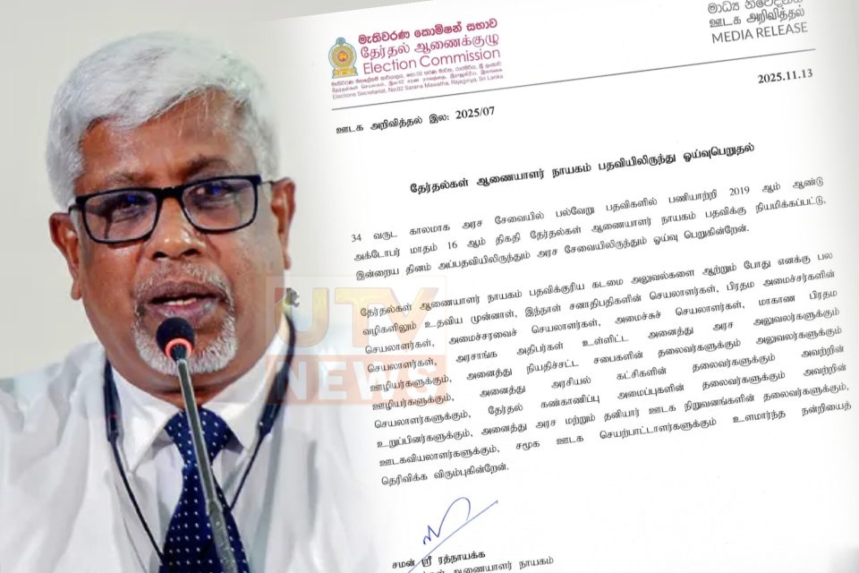 தேர்தல்கள் ஆணையாளர் நாயகம் பதவிலிருந்து ஓய்வு பெறுவதாக சமன் ஸ்ரீ ரத்நாயக்க அறிவித்துள்ளார்.