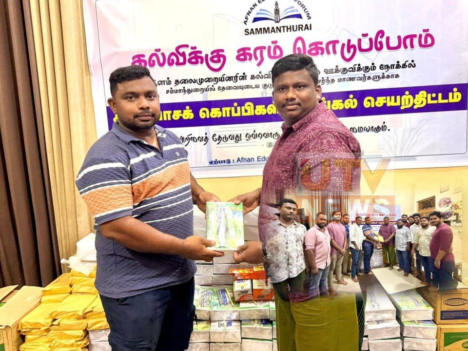 “கல்விக்கு கரம் கொடுப்போம்” என்ற தொனிப்பொருளின் கீழ், சம்மாந்துறை பிரதேச சபை உறுப்பினர் அமீர் அப்னான் அவர்களின் முன்னெடுப்பில், ரூபாய் 06 லட்சம் செலவில், முதல் கட்டமாக 500 மாணவர்களுக்கு கற்றல் உபகரணங்கள் வழங்கும் வேலைத்திட்டம் முன்னெடுக்கப்பட்டுள்ளது.