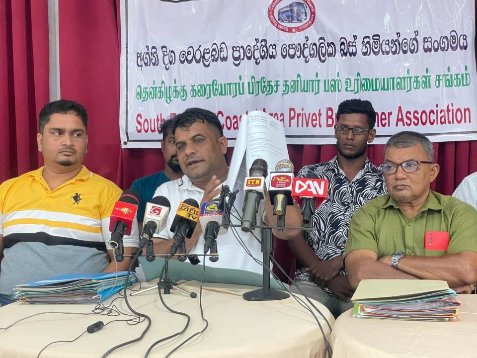 தென்கிழக்கு கரையோரப் பிரதேச தனியார் பஸ் உரிமையாளர்கள் சங்கத்தினால் ஏற்பாடு செய்யப்பட்ட ஊடகவியலாளர் சந்திப்பு இன்று மதியம் அட்டாளைச்சேனை லொயிஸ்ட் ஹோட்டலில் இடம்பெற்றது. இதில் சங்கத்தின் தலைவர் உட்பட நிர்வாக சபையினர் பங்கேற்றனர்.