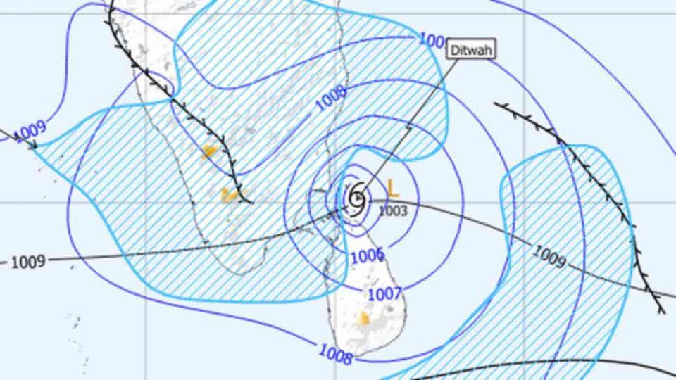 “டித்வா” புயலானது தற்போது காங்கேசன்துறையிலிருந்து வடகிழக்கு திசையில் 210 கி.மீ தொலைவில் அகலாங்கு 11.4°N மற்றும் நெட்டாங்கு 80.6°E இற்கு அருகில் மையங்கொண்டுள்ளது.
