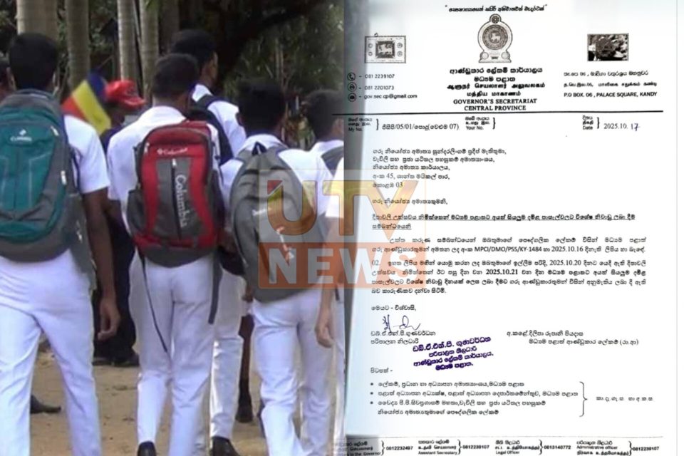 இது குறித்து மத்திய மாகாண ஆளுநர் அலுவலகத்தினால் மத்திய மாகாண கல்வித் திணைக்களத்திற்கு எழுத்து மூலம் கடிதம் அனுப்பி வைக்கப்பட்டுள்ளது.