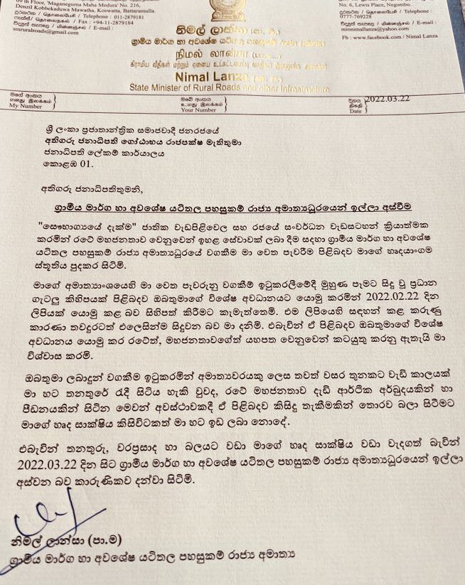 உள்நாடுநிமல் லான்சா இராஜினாமா March 22, 2022180 Share0 (UTV | கொழும்பு) – கிராமிய வசதிகள் மற்றும் ஏனைய உட்கட்டமைப்பு வசதிகள் இராஜாங்க அமைச்சர் பதவியில் இருந்து நிமல் லான்சா இராஜினாமா செய்துள்ளார். தமது பதவி விலகல் கடிதத்தை அவர், ஜனாதிபதி கோட்டாபய ராஜபக்ஷவுக்கு அனுப்பி வைத்துள்ளதாக தெரிவிக்கப்படுகிறது.