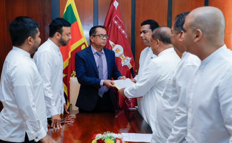 இப்பிரேரணையை கையளிக்கும் நிகழ்வில், எதிர்க்கட்சியின் பிரதம கொறடா கயந்த கருணாதிலக்க, எதிர்க்கட்சியின் பிரதி கொறடா ஜே.சி. அலவத்துவல, ஐக்கிய மக்கள் சக்தியின் பொதுச் செயலாளர் ரஞ்சித் மத்தும பண்டார, டி.வி.சானக, காவிந்த ஜயவர்தன உள்ளிட்ட பாராளுமன்ற உறுப்பினர்கள் பங்கேற்றனர்.