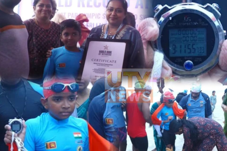 முழங்காலுக்குக் கீழ் பாதிக்கப்பட்ட மாற்றுத்திறனாளியான 12 வயதுச் சிறுவன் தலைமன்னாரிலிருந்து தமிழ்நாட்டின் தனுஷ்கோடி வரையிலான பாக்கு நீரிணையை, கடந்த வெள்ளிக்கிழமை 9 மணி 11 நிமிடத்தில் நீந்திக் கடந்து சாதனைபுரிந்துள்ளார்.