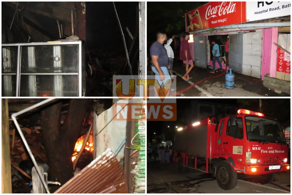 மட்டக்களப்பு போதனா வைத்தியசாலைக்கு முன்னால் அமைந்துள்ள பூட்டியிருந்த உணவகம் ஒன்று திடீரென தீப்பற்றியதையடுத்து உணவகத்தில் நித்திரையில் இருந்த 7 பணியாளர்களை தெய்வாதீனமாக உயிர் தப்பியதுடன் தீயணைப்பு படையினர் மற்றும் பொலிசார் இணைந்து பல மணி நேரத்தின் பின்னர் தீயை கட்டுப்பாட்டுக்குள் கொண்டு வந்ததுடன் கடை தொகுதி முற்றாக தீயில் எரிந்து சாம்பலாகிய சம்பவம் ஞாயிற்றுக்கிழமை (12) நள்ளிரவு 11.00 மணிக்கு இடம் பெற்றதை அடுத்து அங்கு பெரும் பதற்றம் ஏற்பட்டது.