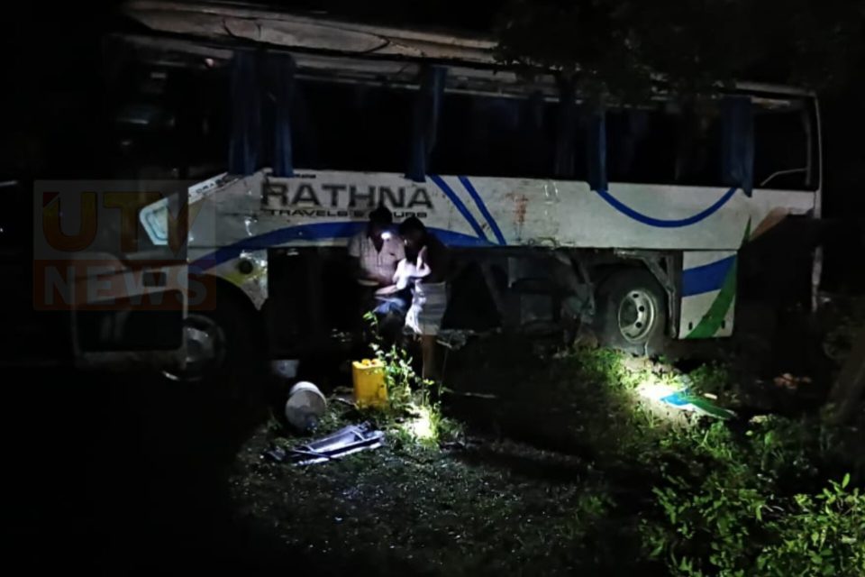 பஸ் கட்டுப்பாட்டை இழந்து வீதியை விட்டு விலகி விபத்துக்குள்ளாகியுள்ளதாக தெரிவிக்கப்படுகிறது.
