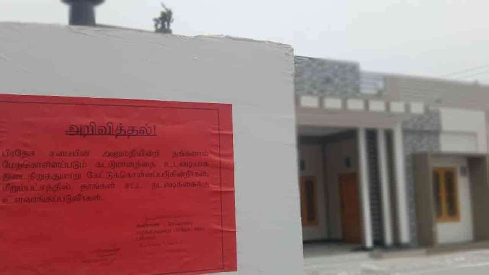 அதில் “பிரதேச சபையின் அனுமதியின்றி தங்களால் மேற்கொள்ளப்படும் கட்டுமான பணிகளை உடன் நிறுத்தவும். மீறினால் சட்ட நடவடிக்கைக்கு உட்படுவீர்கள்” என்று எச்சரிக்கப்பட்டுள்ளது.