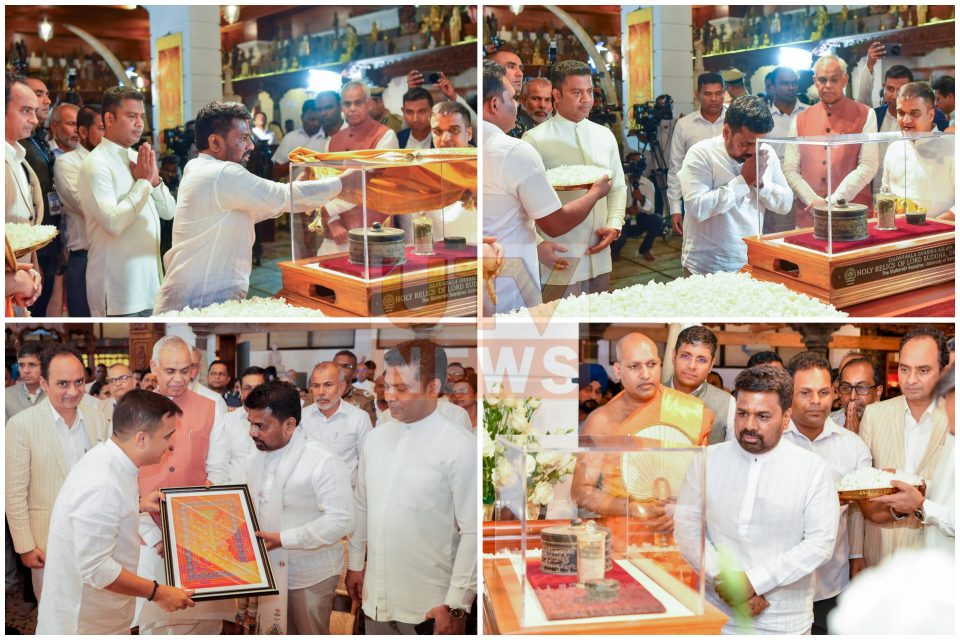 இந்தியப் பிரதமர் நரேந்திர மோடியின் இலங்கை விஜயத்தின் போது ஜனாதிபதி அநுர குமார திசாநாயக்கவுடன் நடத்தப்பட்ட கலந்துரையாடலின் விளைவாக, இந்தியப் பிரதமர் நரேந்திர மோடியின் தலையீட்டின் கீழ் இந்திய அரசாங்கத்தின் முழு அனுசரணையுடன் இலங்கைக்குக் கொண்டுவரப்பட்ட “ புத்த பெருமானின் புனித சின்னங்கள்” தரிசனத்தின் ஆரம்ப நிகழ்வைக் குறிக்கும் வகையில் புத்த பெருமானின் புனித சின்னங்களுக்கு இன்று (04) பிற்பகல் ஜனாதிபதி அநுர குமார திசாநாயக்க, முதல் மலர் அஞ்சலி செலுத்தி வழிபட்டார்.